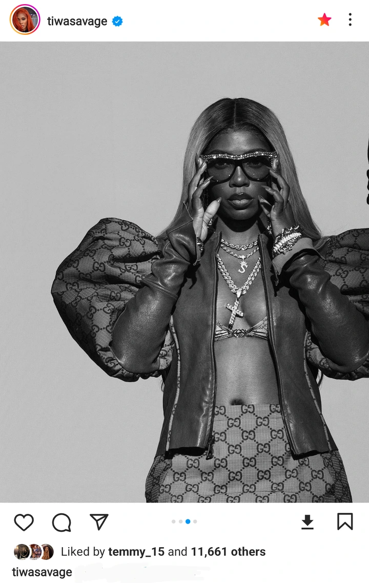 Popular Nigerian female singer, Tiwa Savage has used her most recent Instagram post to show off her beauty to her fans. She is someone who loves to showcase her beauty in different outfits on social media, and she has done the same again by appearing in a beautiful outfit. Many of her fans who came across the post could not help but react as they made their feelings known towards her new post.
